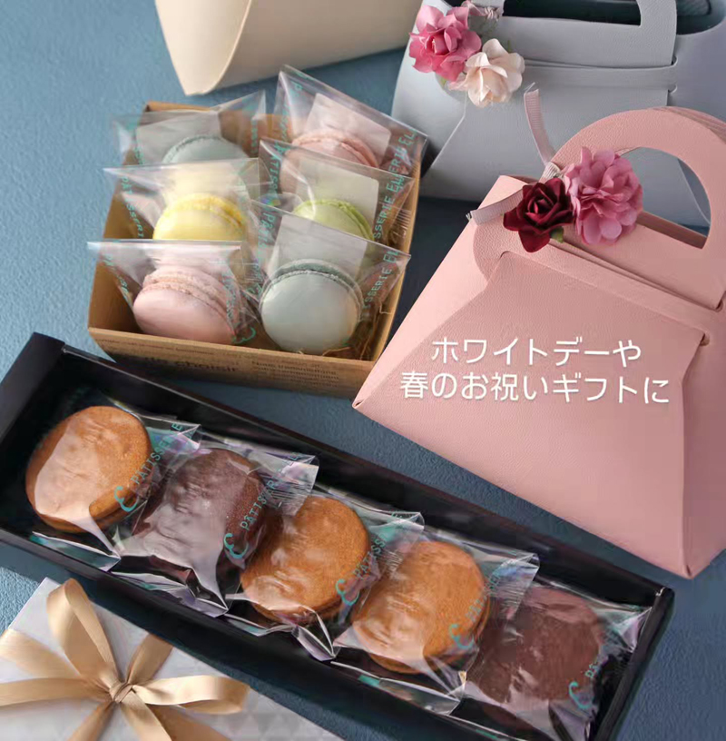 可愛いバッグ型の入れ物に焼き菓子を詰めました♪焼き菓子の新作・生キャラメルサンドも入っています(^ー^)