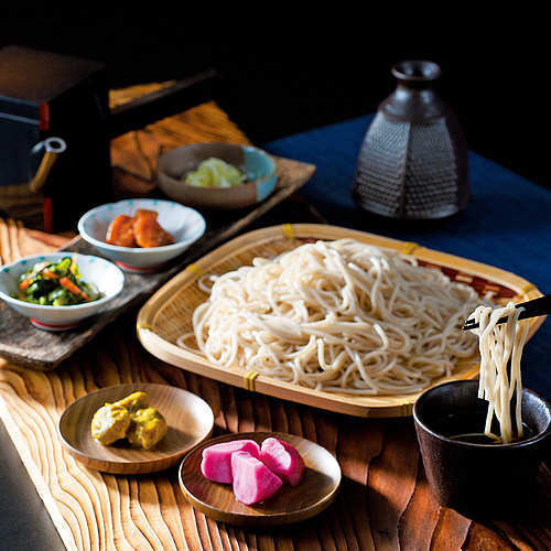 山形産のそば粉「出羽かおり」を使用し、刈り入れ直後にそば粉本来の風味を守る石臼挽きで仕上げた新そばと、旬のお漬物のセットです。年越しにどうぞ。