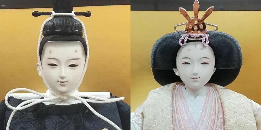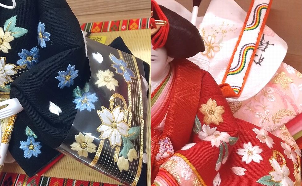 年々サイズが小さくなってきていますが、その中にもそれぞれ個性を持っています。左のお雛様はまるで韓流スターのように顎が細くて二重がくっきり!右はお衣装すべてに細かい手刺繍が施されています。(クリックすると拡大します)