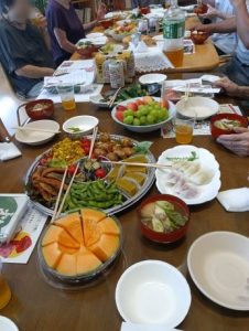 町内会よりまだまだ若くて元気な敬老9名のみなさんがお越しになり、お食事やおしゃべり、そして民謡「米沢新調」の踊りを楽しまれていました。