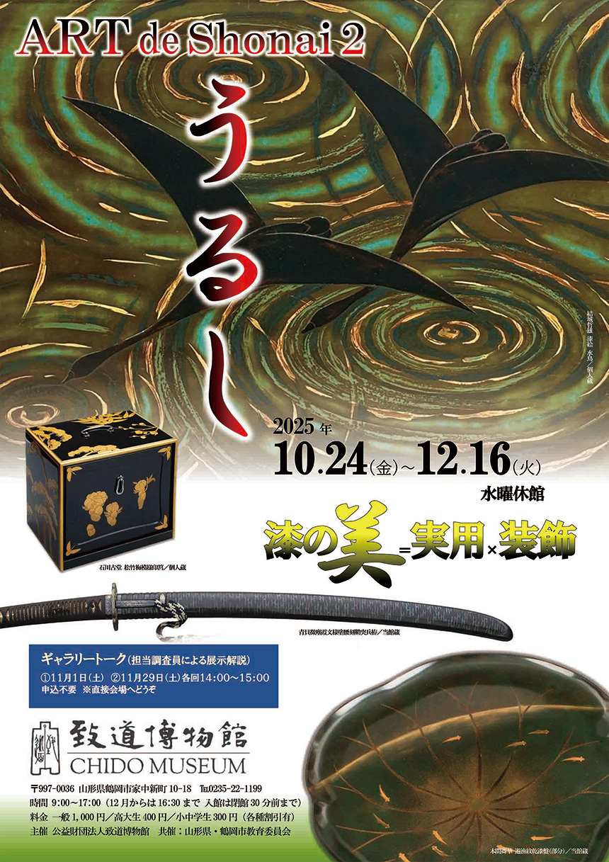 | イベント | ◯担当学芸員によるギャラリートーク ・11月1日(土) ・11月29日(土) 各回14:00~15:00 申込不要 ※詳しくは、致道博物館ホームページをご覧ください |