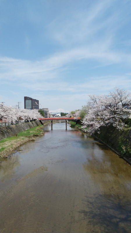 鶴岡市 内川 桜と鳥海山